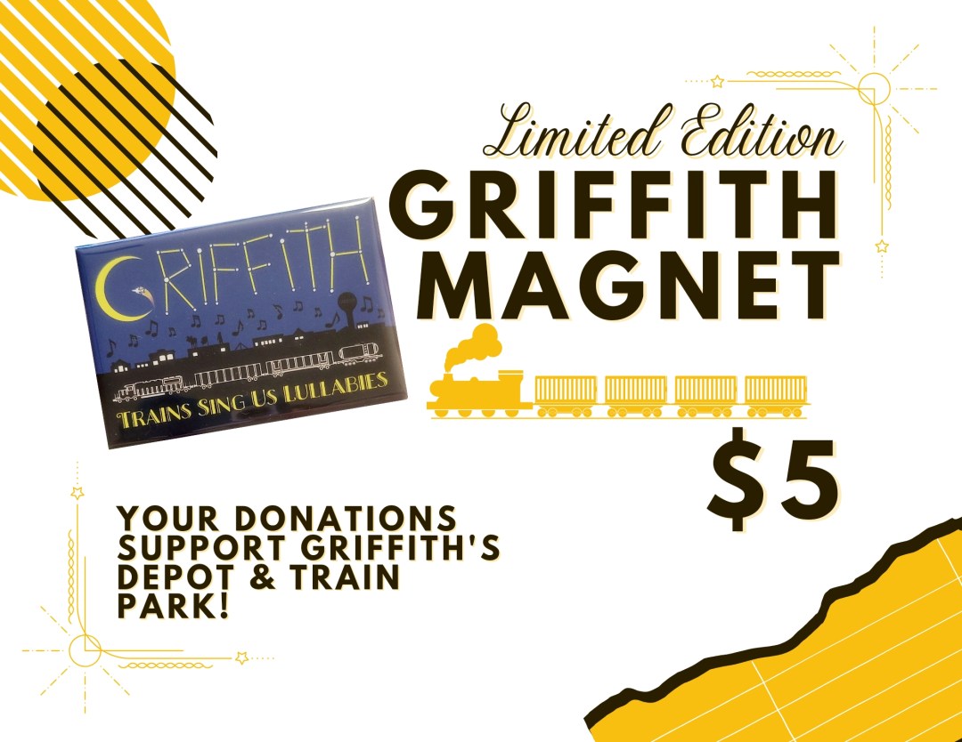 All sales and proceeds go directly to the upkeep of the Depot Museum, Train Park, Railroad Webcam, and Griffith History Preservation!!