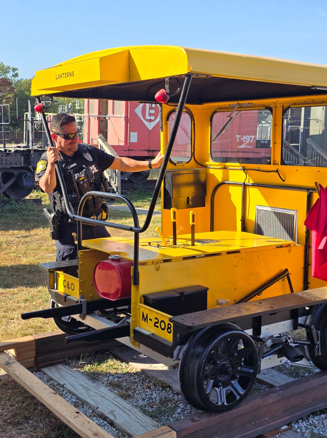 These incredible officers talked to all the kids about railroad safety, their jobs, and different aspects of maintaining a railroad. They made sure that every class knew about the ENS (the Blue and White sign), which is the Emergency Notification Sign found at every crossing. This sign can help in an emergency around the railroad tracks. (*More info below!)