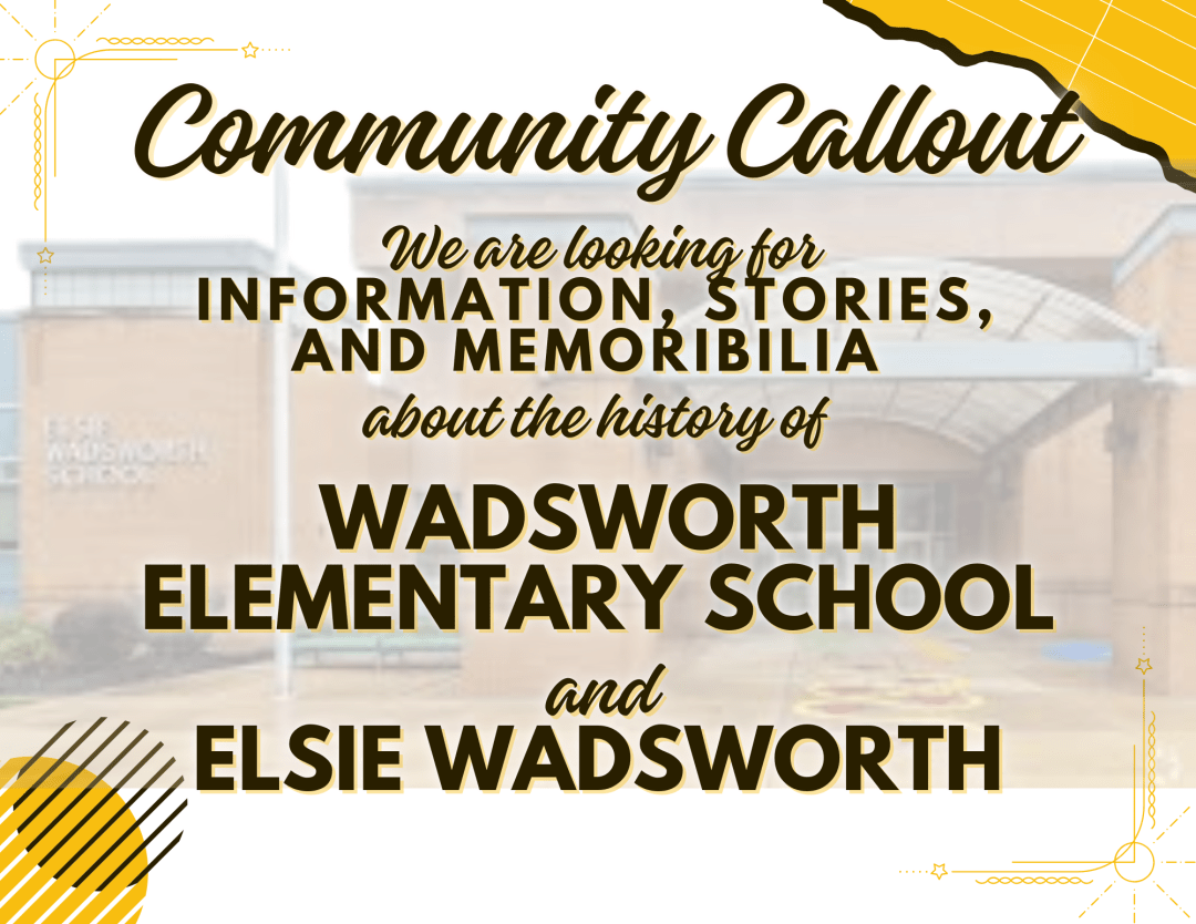 Mrs. Sue Guy and the Griffith Historical Society are embarking upon a fun project about the history of Wadsworth Elementary School and Mrs. Elsie Wadsworth herself, but we need information from YOU!