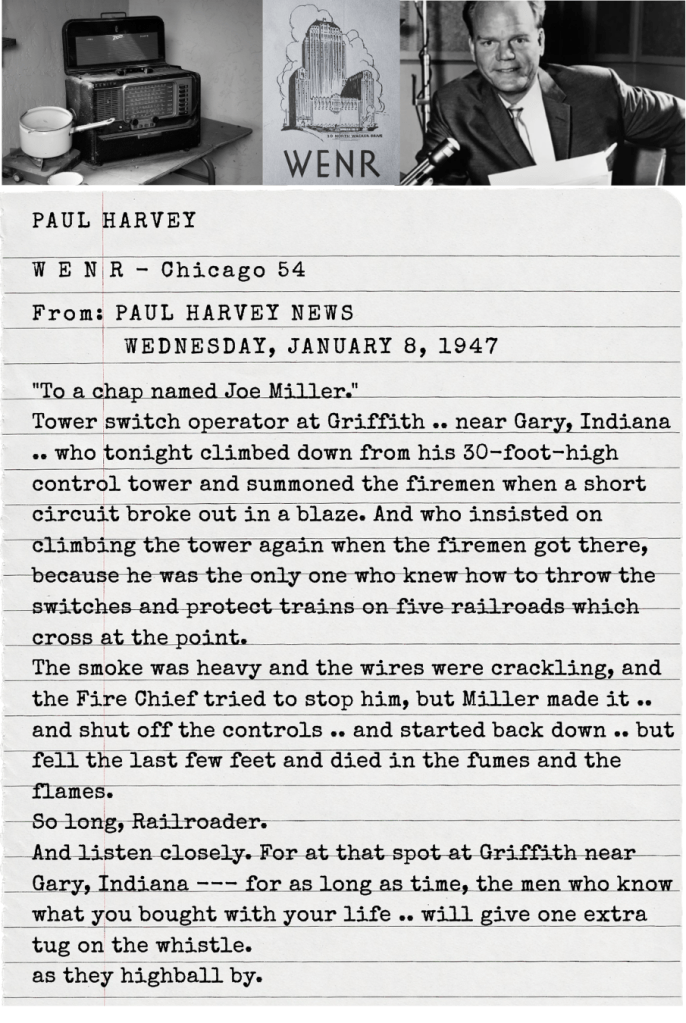 Hereโ€™s the rest of Joeโ€™s story, Paul Harveyโ€™s tribute to Griffithโ€™s own, Joe Miller, was broadcast on January 8, 1947.