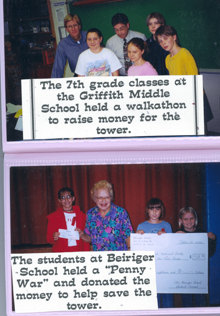 Seventh-graders, in the then Griffith Junior/Senior High School, held a walkathon from the school to our Historical Park and back, earning us more than $500. And the Beiriger Elementary School students held a Penny War for us.