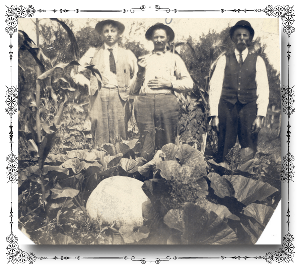 Mat Beiriger, Scottie Schweitzer and Mat Theis pose for a photo amidst a bountiful fall harvest. Farmers were the first to come to the Griffith area in the mid-1850’s when land here was cheap, but needed to be drained before it could be used. Under all the water, they found rich, fertile land on which to plant their crops.