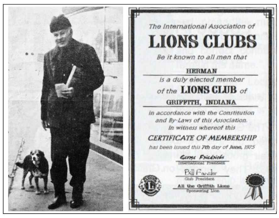 But first we want you to meet Herman the Dog. Herman never left Rayโ€™s side. Like when he was walking and encountered the ladies. Even when Ray attended Griffith Lions Club meetings. Because of his devotion to his master, Herman was made an honorary Lion.