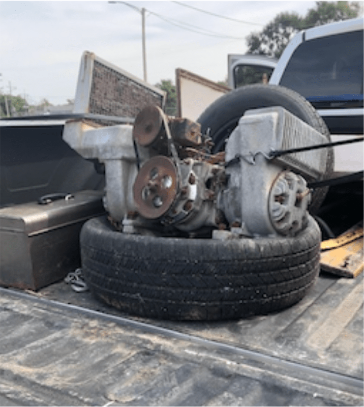 Mid-summer 2021, the battered, bare-bones skeleton of our little car, was taken away by Perry Frye, along with a heap of random parts that were still left.