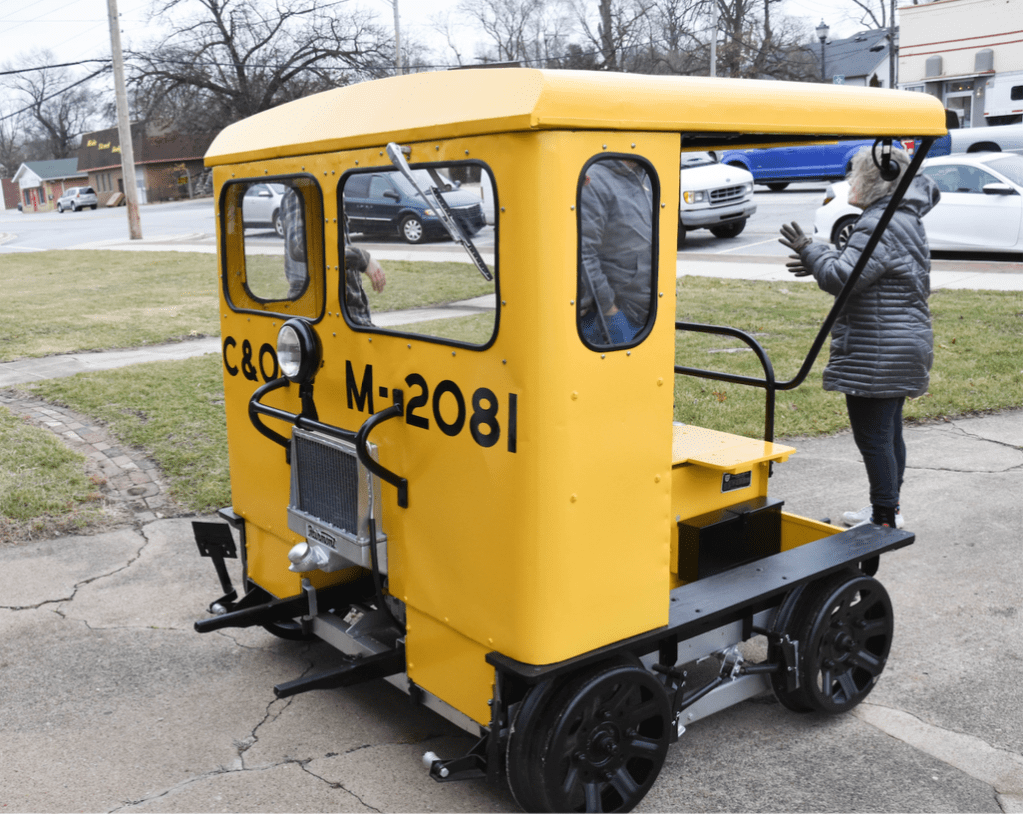 Perry and Kevin gave us the best gift ever as the Griffith Historical Society celebrates our 40th anniversary this year — they restored our Inspection Car to better shape than it was before. It now has front and back working lights, which were not on the car when it was donated some 40 years ago.