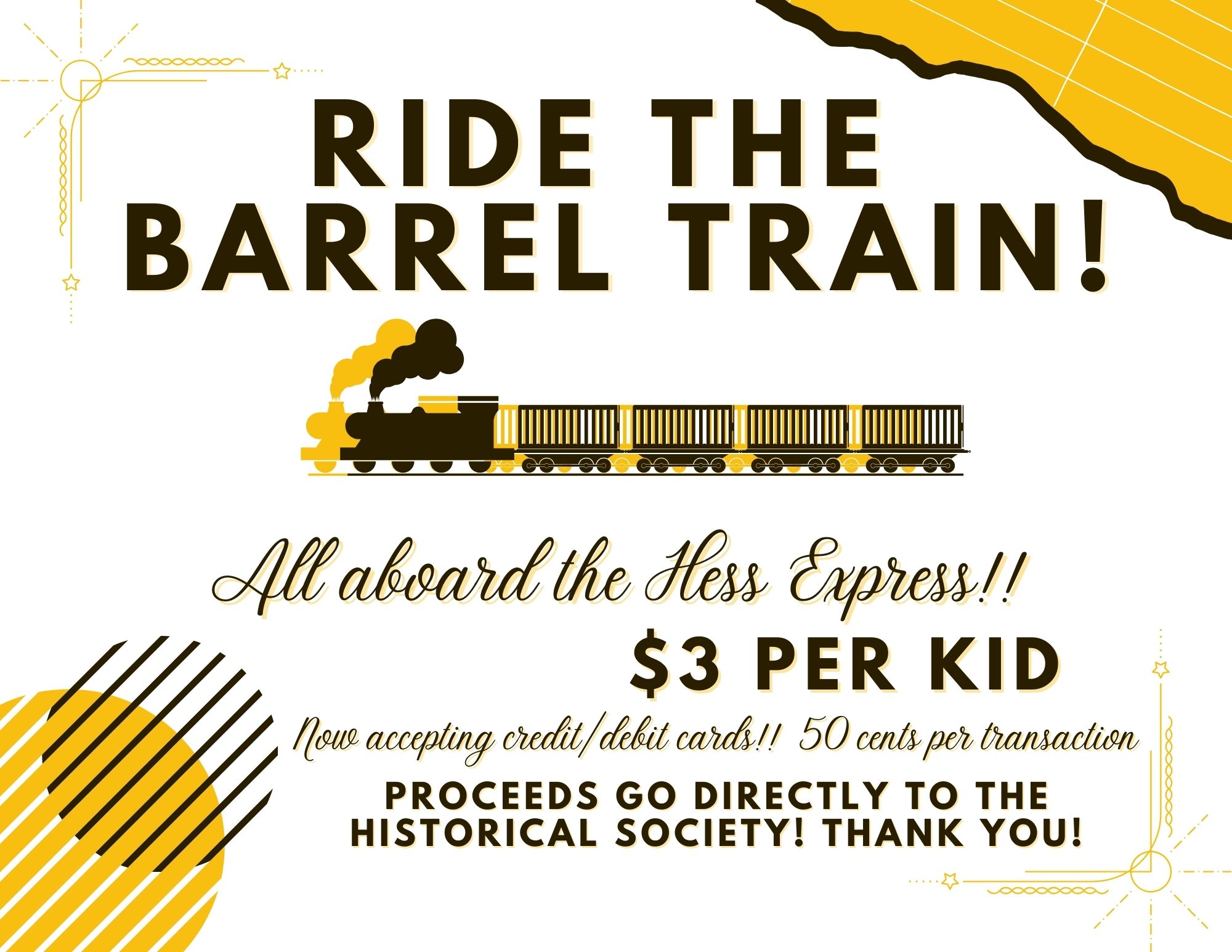๐Ÿš‚ When we’re at Central Park, we’ll have the Barrel Train!! Grab your ticket to ride! $3๏ธโƒฃ per kid! All aboard!!